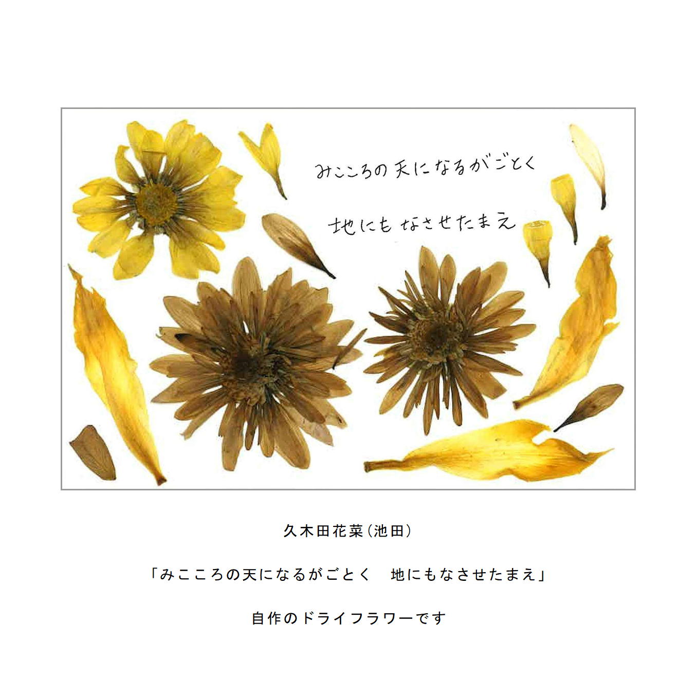・活花や手芸など立体的な作品は写真を撮影してハガキサイズで提出する。