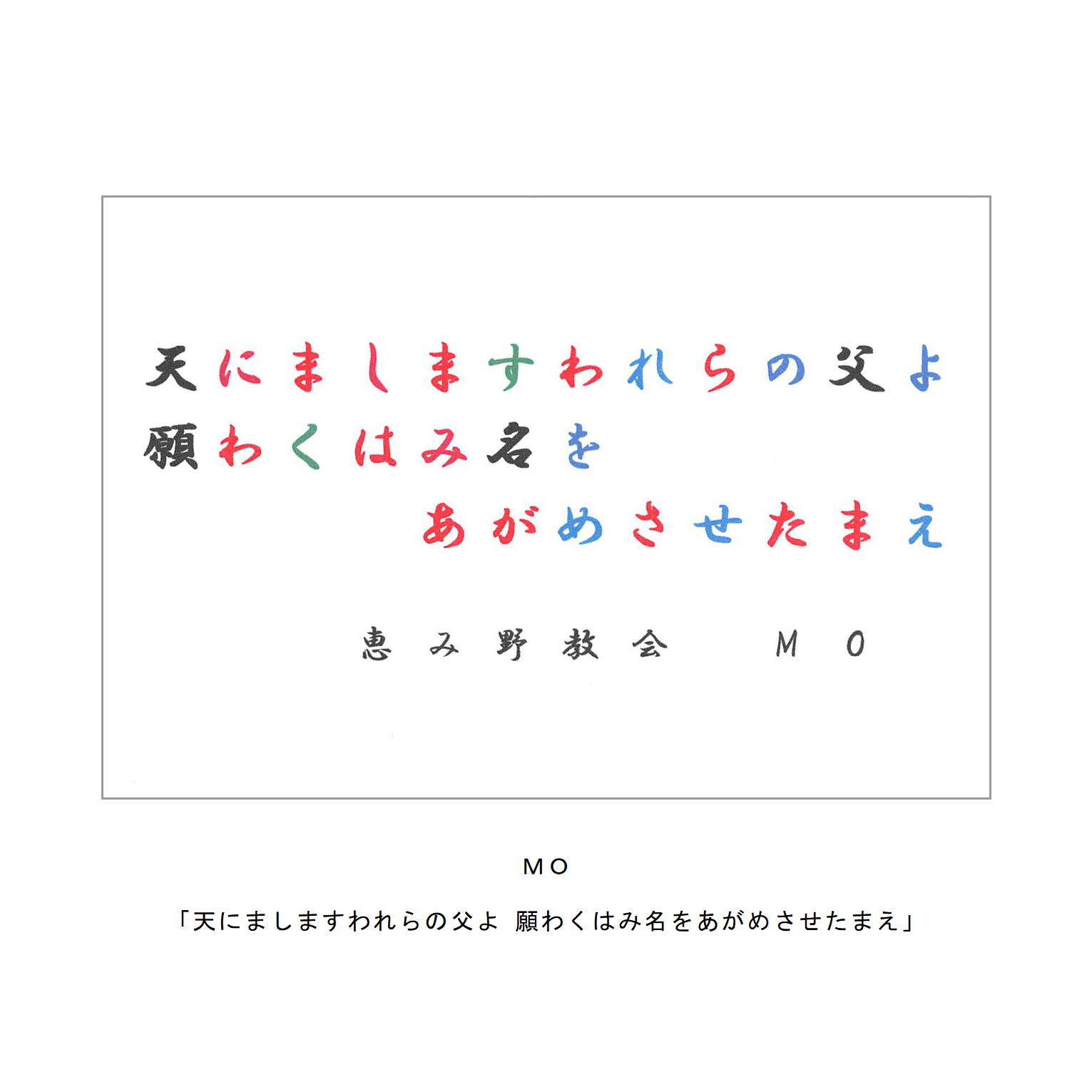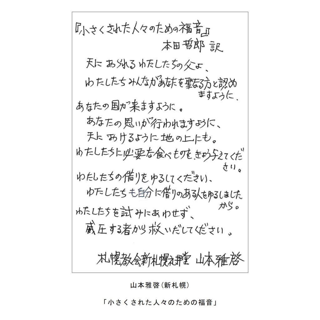 教区に属するできるだけ多くの者が主の祈りをテーマとしたハガキ作品を準備し、それをネット上に展示することにより互いの主の祈りへの思いをわかちあう。