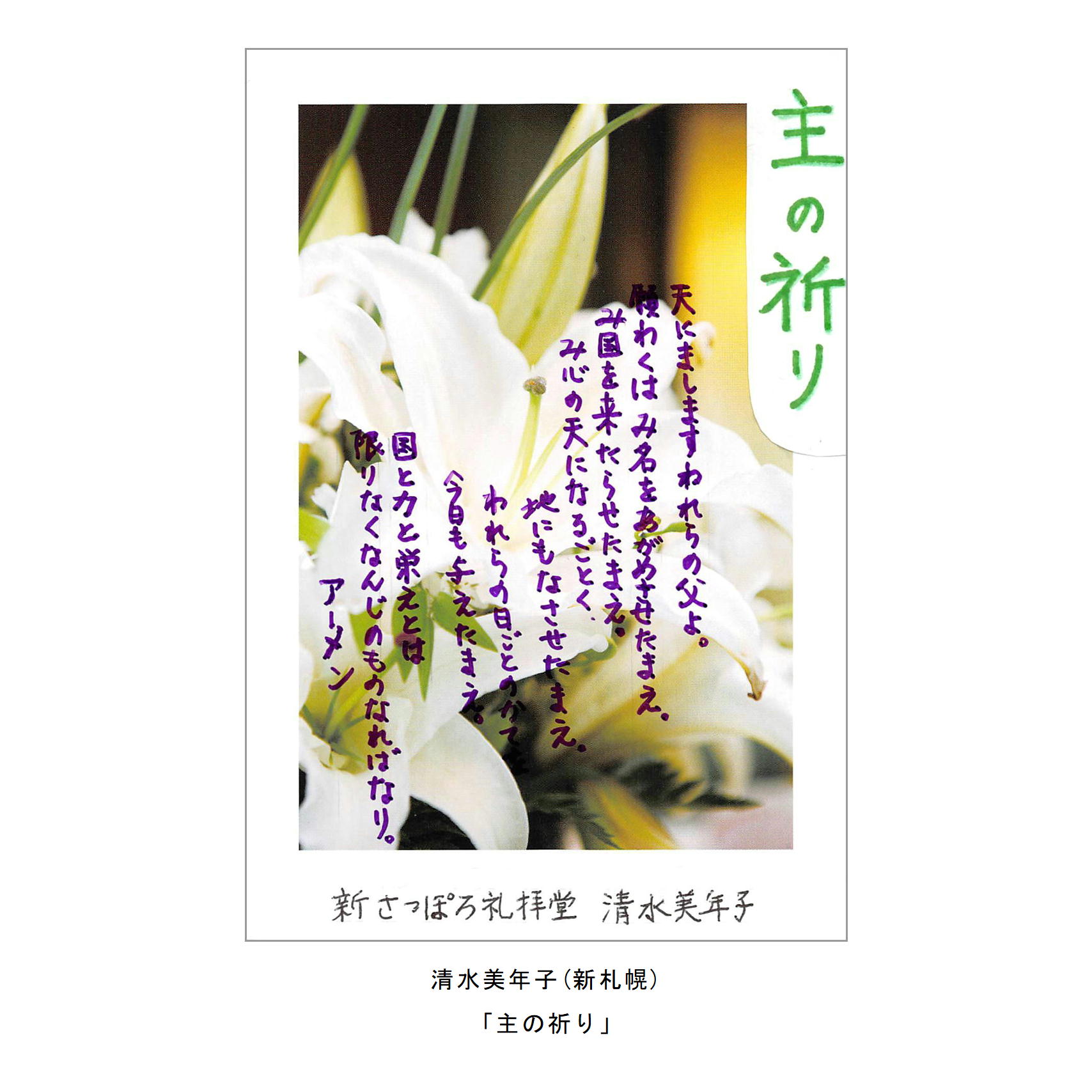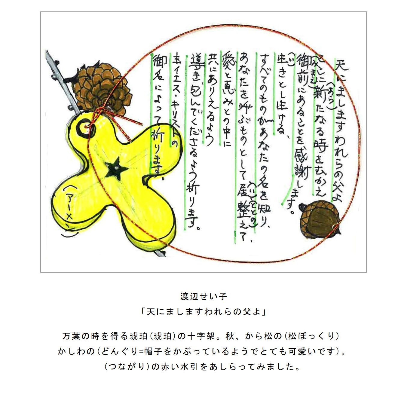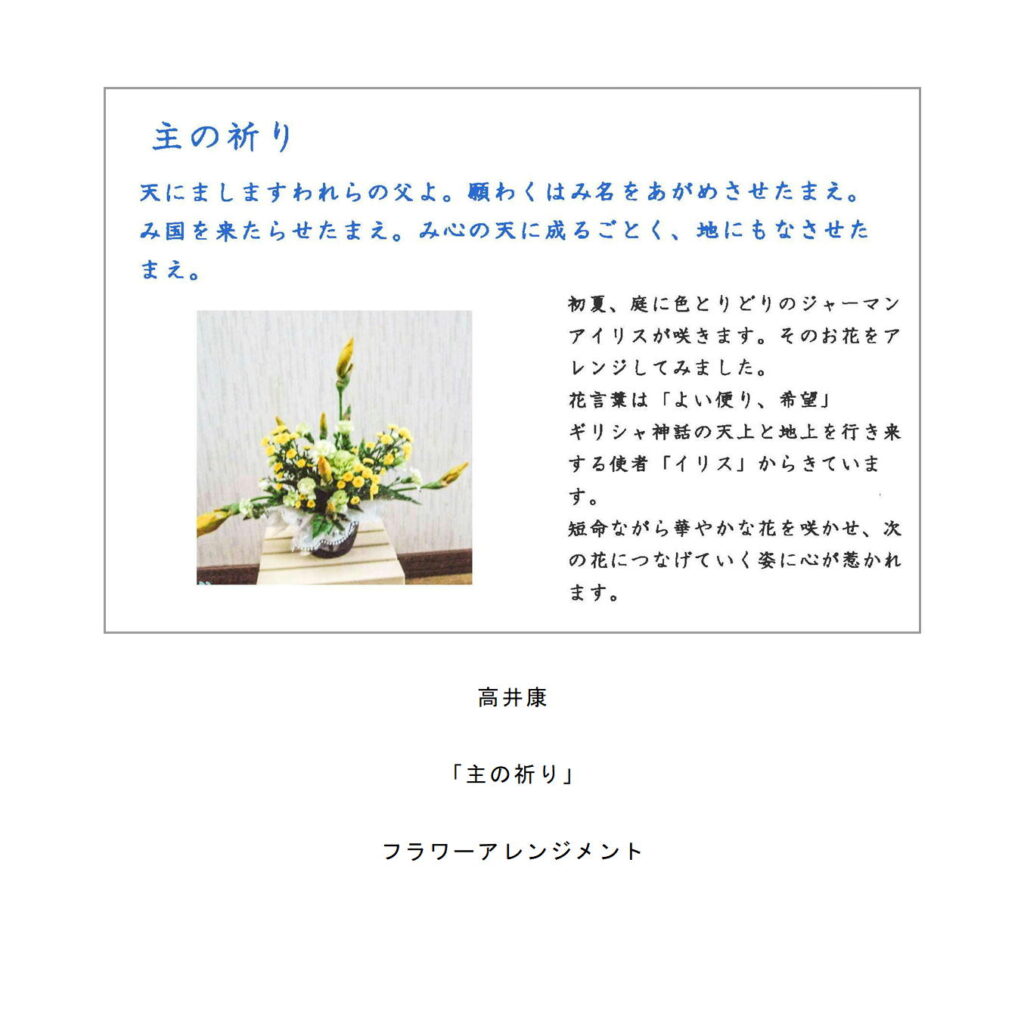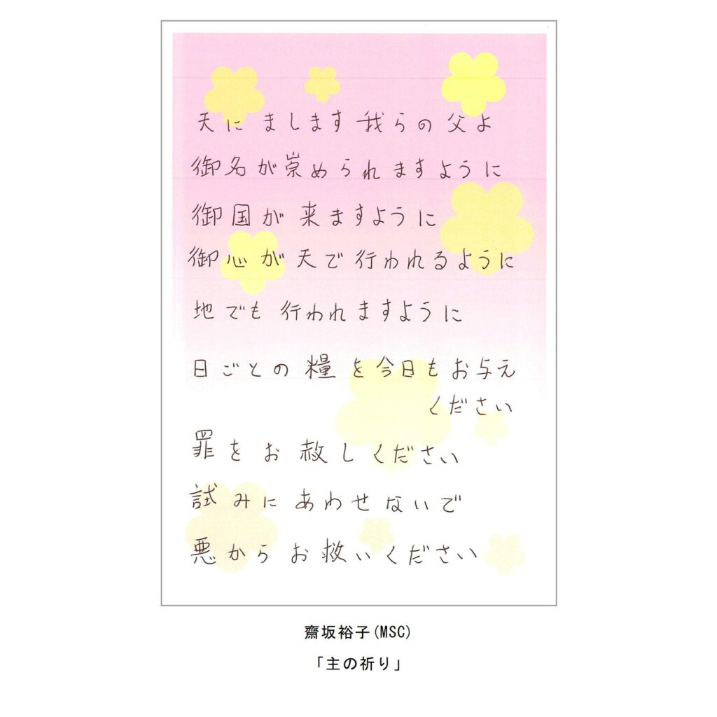 ・主の祈りをイメージしたイラストや絵手紙、写真、刺繍など。