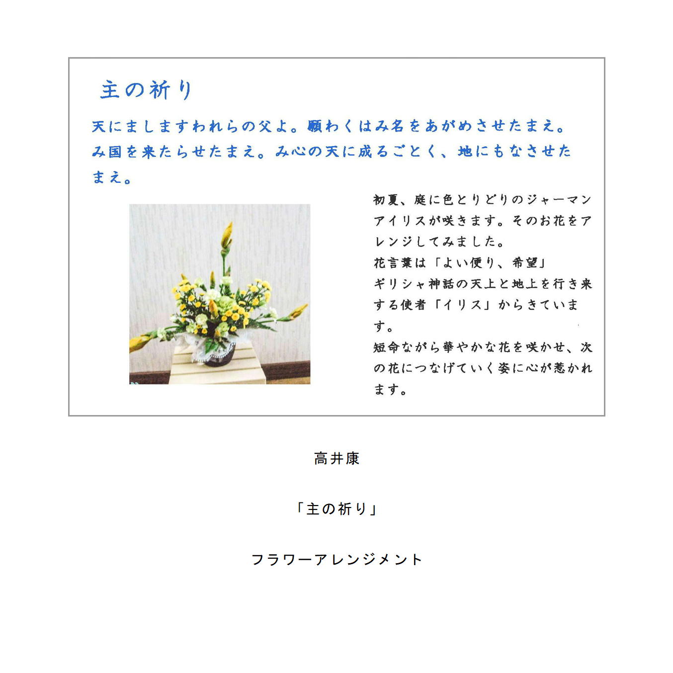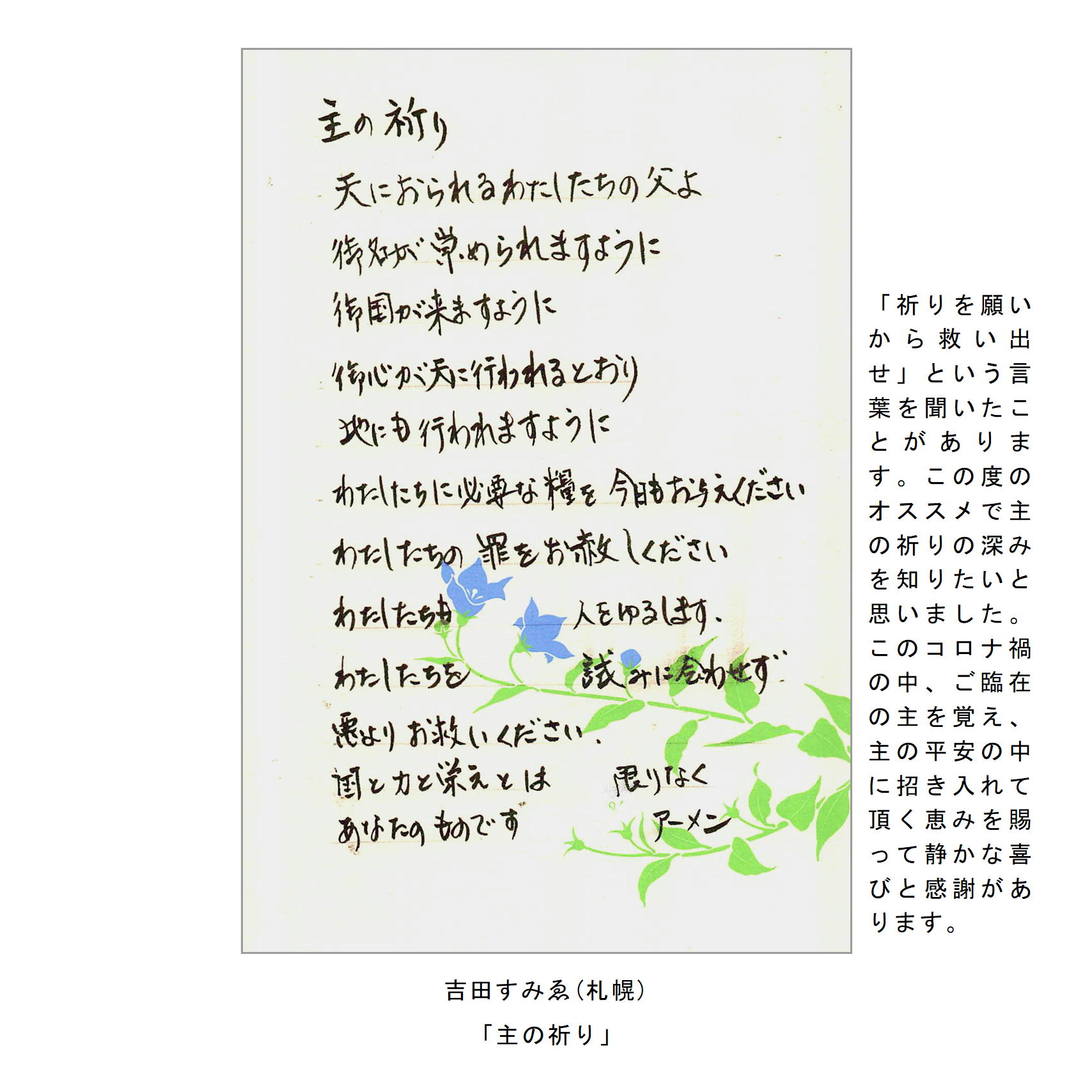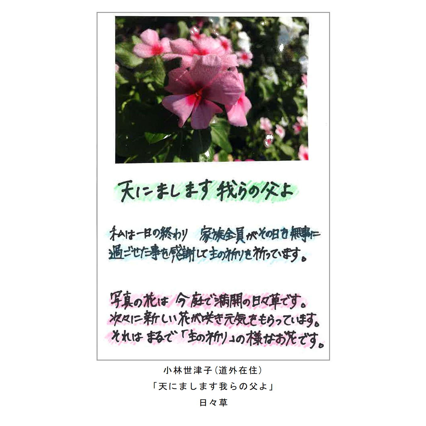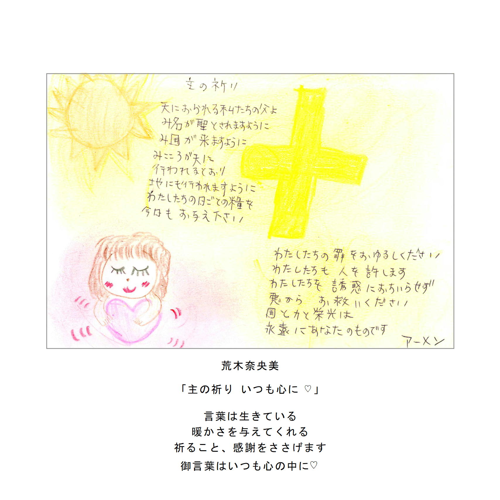 ・主の祈りをイメージしたイラストや絵手紙、写真、刺繍など。