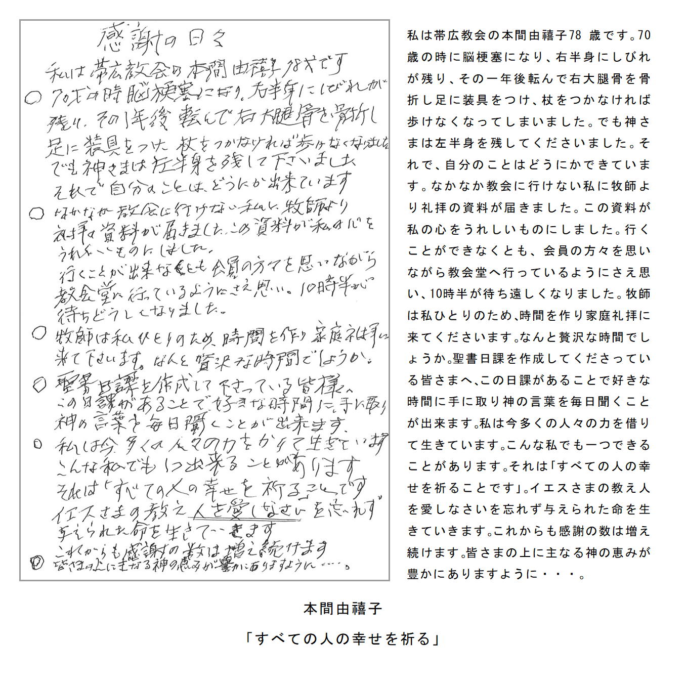 ・用紙はハガキサイズであれば縦横自由。教会で配布される用紙を用いてもよい。