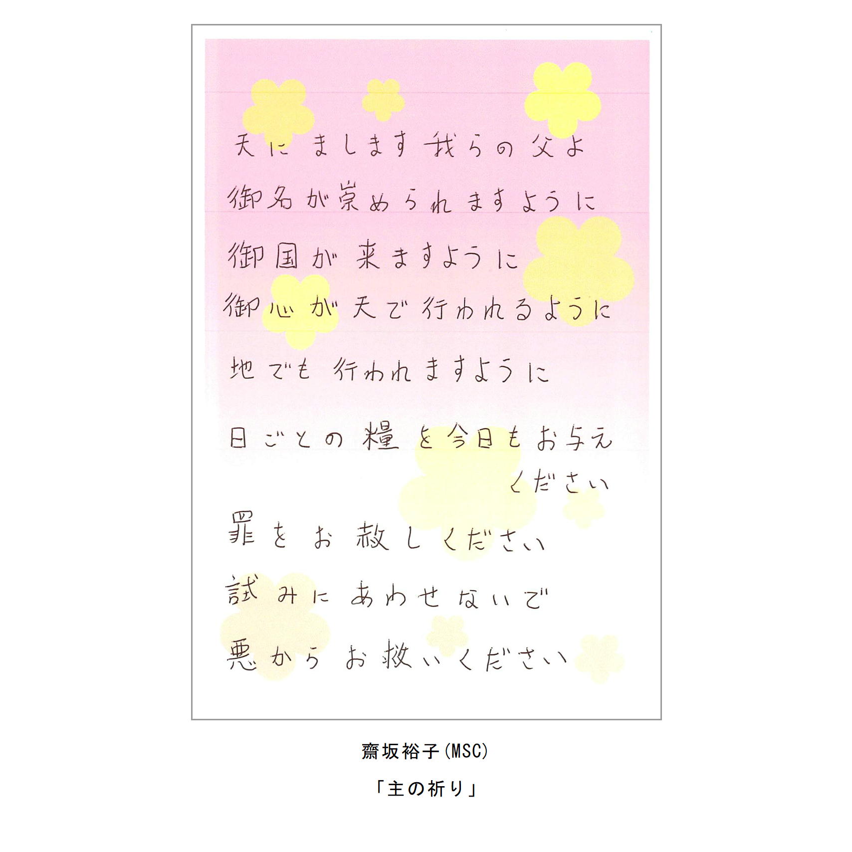 ・主の祈りの全文もしくは一部をペン字や筆文字で書いてみる。
