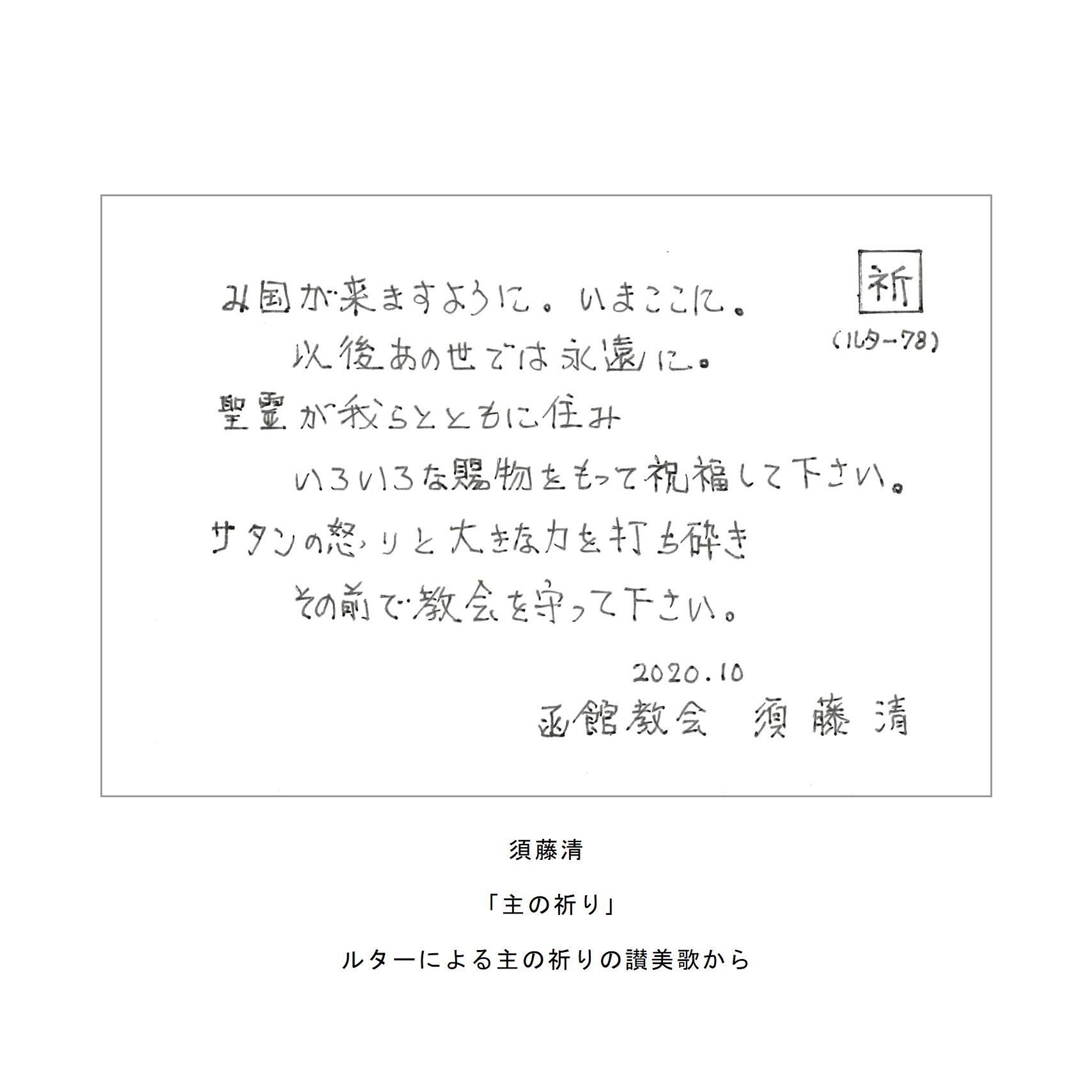 新型感染症の拡大という難しい状況の中、北海道特別教区に属するおひとりおひとりが、それでも神さまのお守りの中でさまざまな形で礼拝を守り、信仰生活を続けておられることとお察し致します。教区では、北海道において感染症が爆発的なひろがりを見せていた4月、復活祭を期して「日ごとに主の祈りを祈りましょう」、と呼びかけさせていただきました。受け止め方は、それぞれであったことと思いますが、わたしたちの生活の中に根付いた祈りの習慣が、わたしたちの信仰を強めてくれたに違いないと信じています。