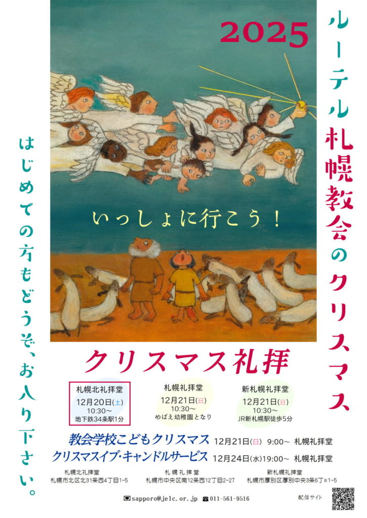 札幌教会札幌北礼拝堂のクリスマスをお祝いする礼拝です。礼拝後に食卓を囲んでお祝い会を致します。ぞうぞどなたでもご参加下さい。