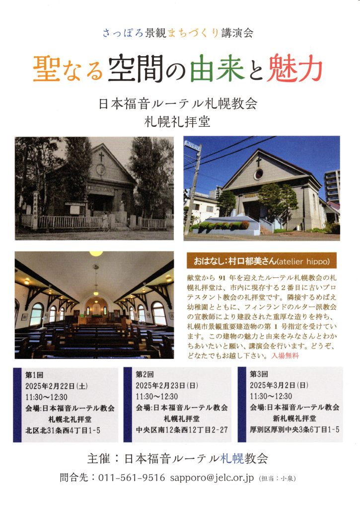 3月2日(日)に新札幌礼拝堂でも行われます。詳しくは下記の案内をご覧ください。