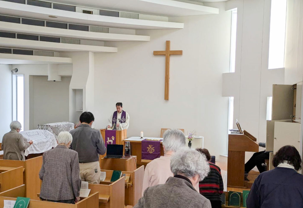 私たちはそれぞれに課せられている十字架を担いながら歩んでいます。しかし同時に、すでに祈られている者として歩む幸いも与えられています。沈黙のうちに先立って行かれる主イエスの後ろを歩むとき、復活へと至る道がすでに備えられていることを信じて、この聖週間を歩んでいきたいと思います。共に主の恵みに支えられて歩んでまいりましょう。 (岡田)